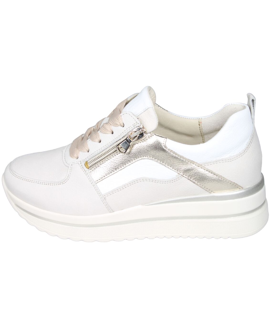 De 669001 K-Luana sneaker van Waldlaufer in wijdte K in 304 759 perl weiss gold is gemaakt van leer/nubuck en geschikt voor extra brede voeten.