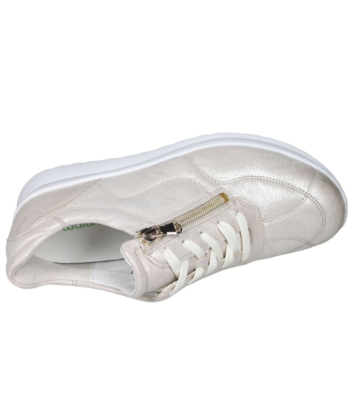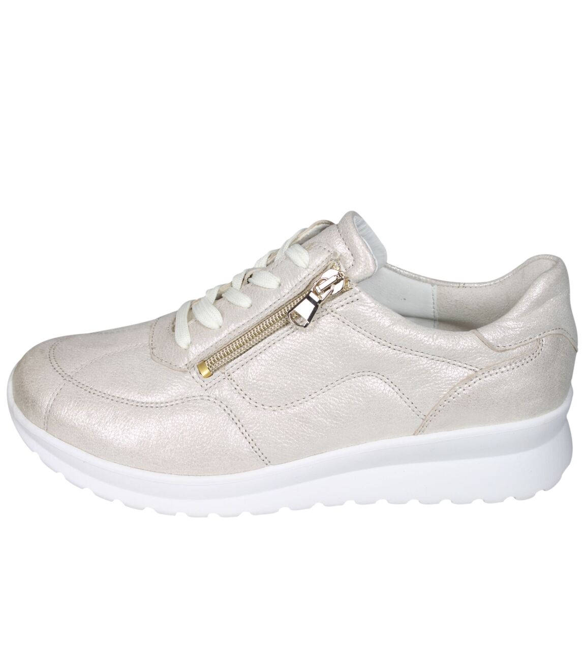 De 688002 K-Sunny sneaker van Waldlaufer in wijdte K in 155 060 beige is gemaakt van metallic print en geschikt voor extra brede voeten.