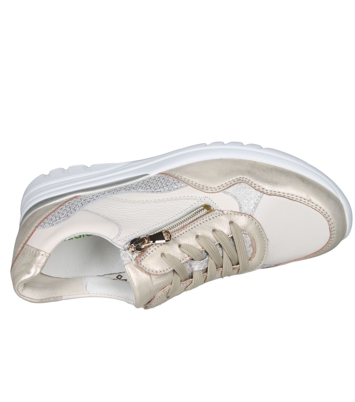 De 927003 H-Carla sneaker van Waldlaufer in wijdte H in 502 647 lightgold perl is gemaakt van leer/metallic en geschikt voor bredere voeten.