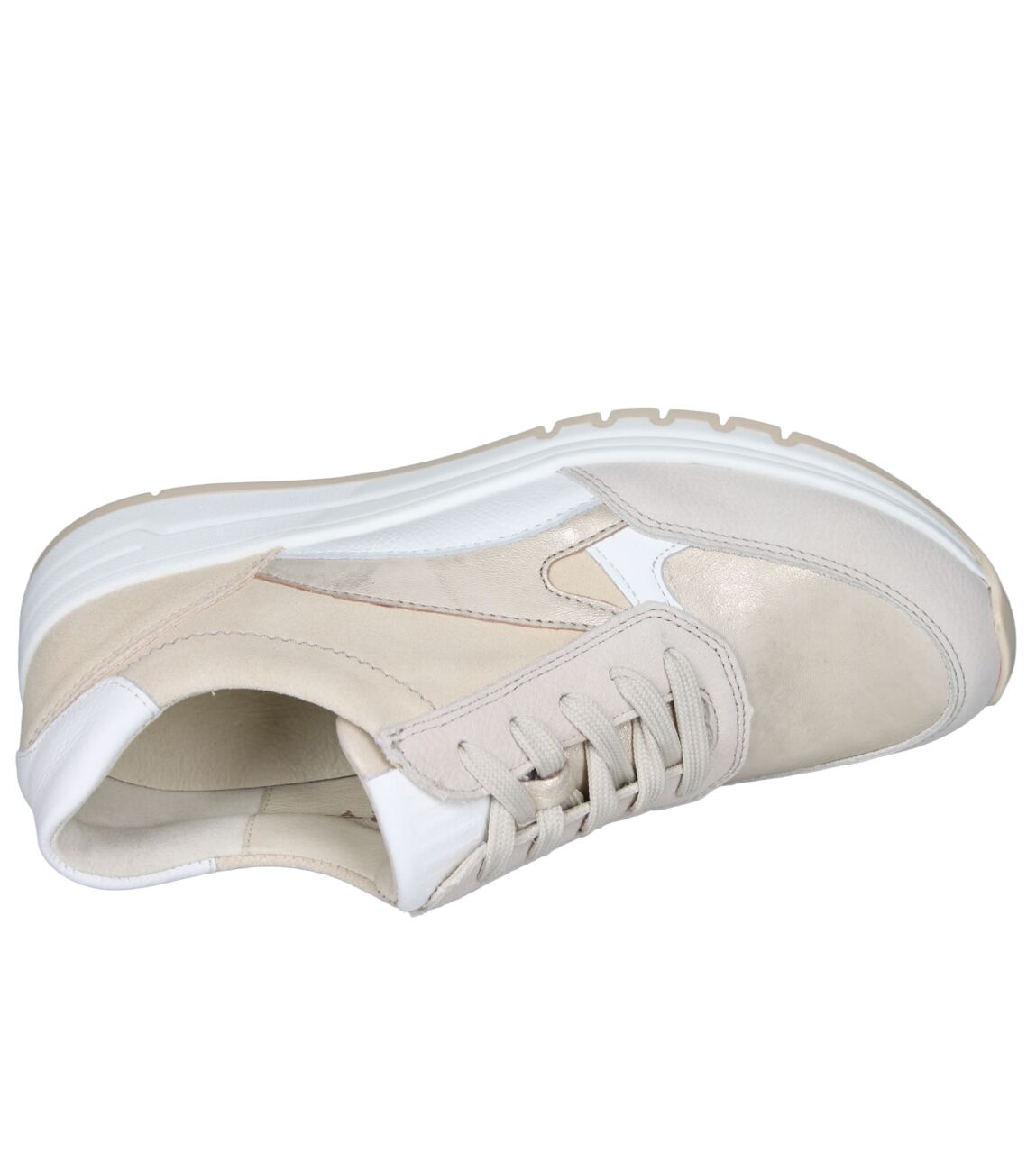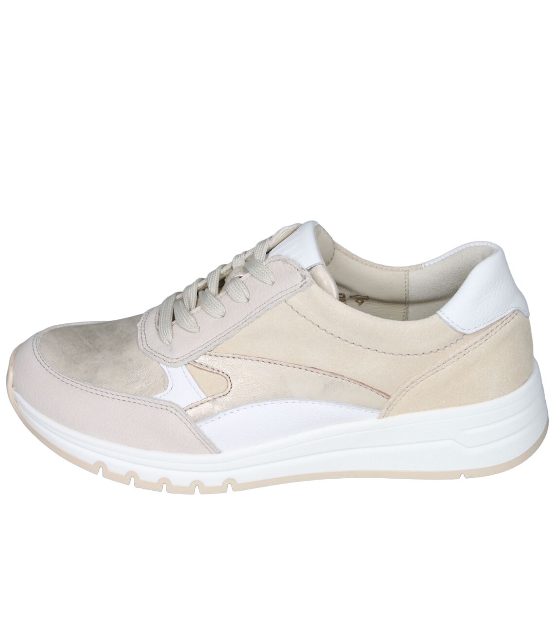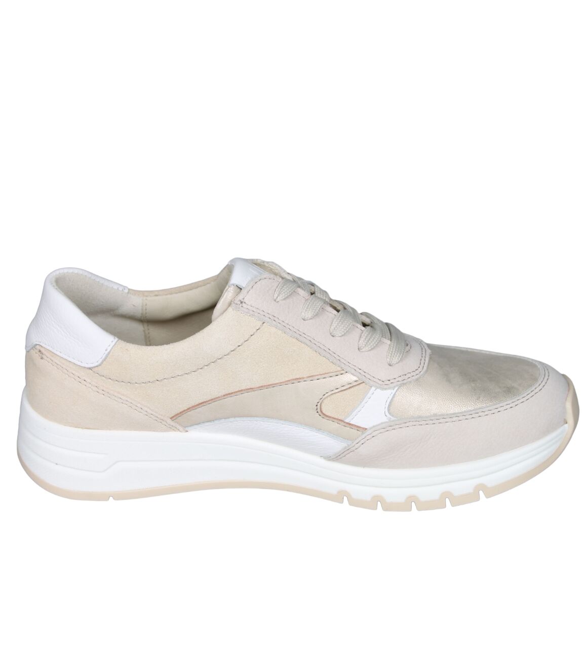 De 957003 H-April sneaker van Waldlaufer in wijdte H in 704 698 perl lightgold is gemaakt van nubuck/metallic en geschikt voor bredere voeten.
