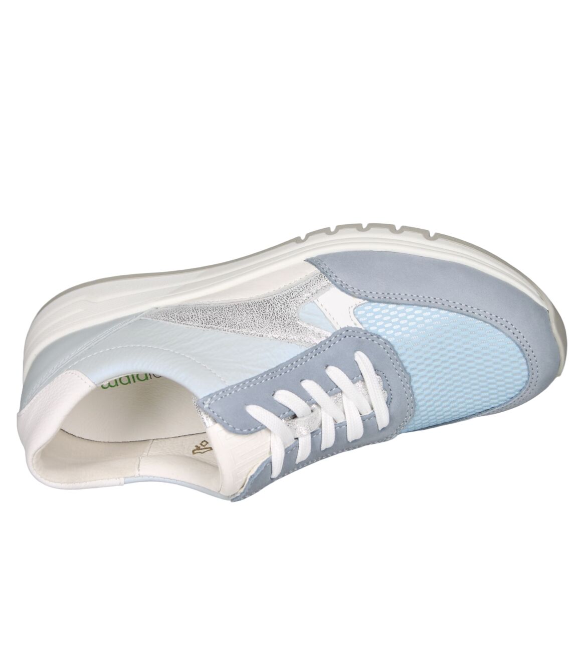 De 957003 H-April sneaker van Waldlaufer in wijdte H in 700 624 sky air weiss silber is gemaakt van nubuck/metallic/mesh en geschikt voor bredere voeten.