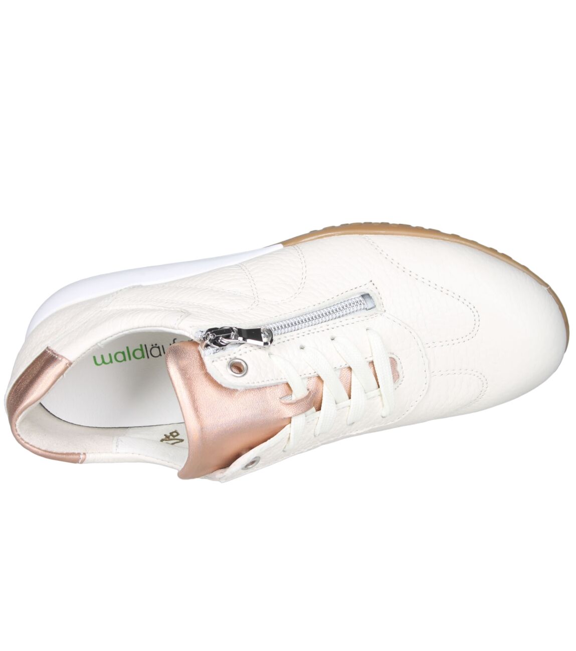De 978002 H-Poppy sneaker van Waldlaufer in wijdte H in 200 111 perl melon is gemaakt van hertenleer en geschikt voor bredere voeten.