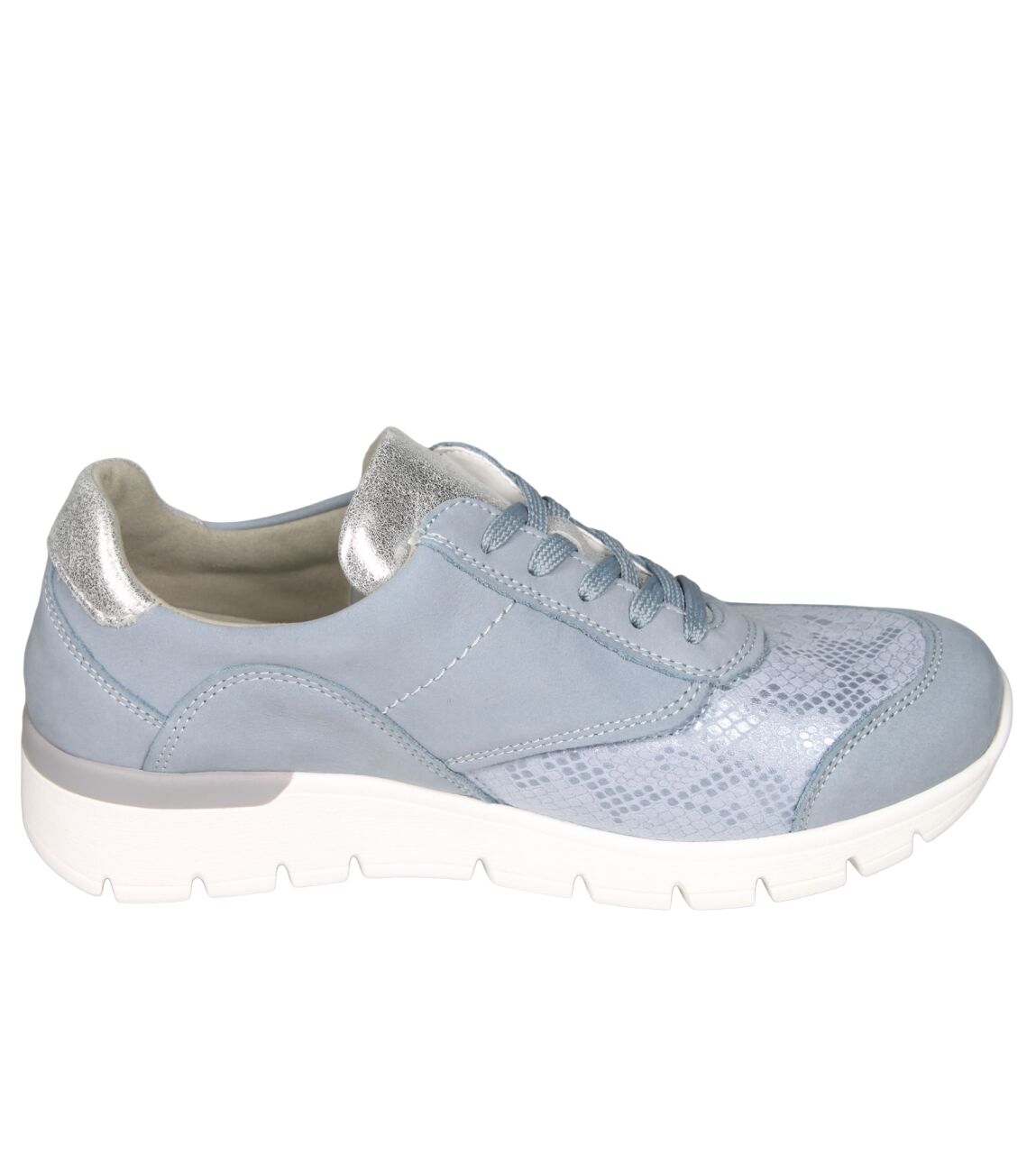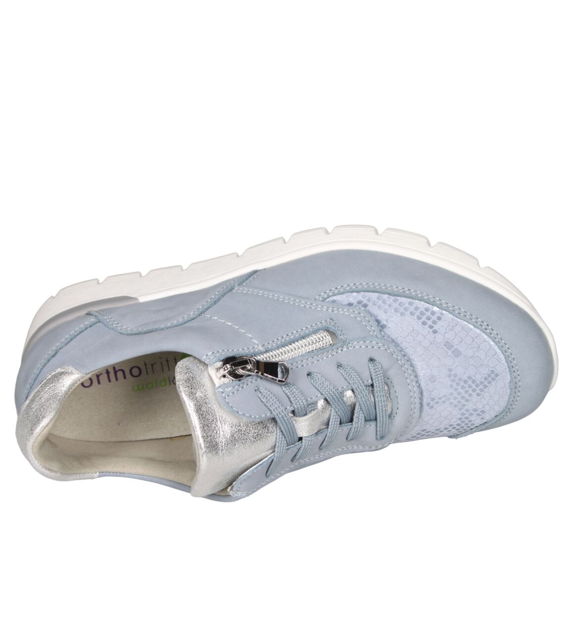 De 626K02 K-Ramona sneaker van Waldlaufer Ortho Tritt in wijdte K in 321 267 sky argento is gemaakt van stretch metallic en geschikt voor extra brede voeten.