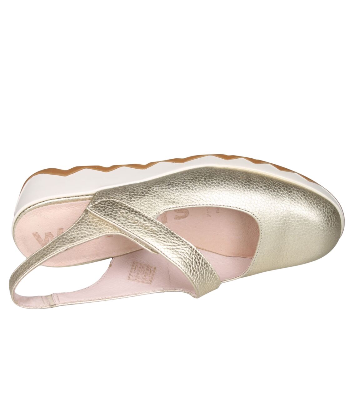 De SIMON C-7622 slingback van Wonders in max platino is gemaakt van metallic.