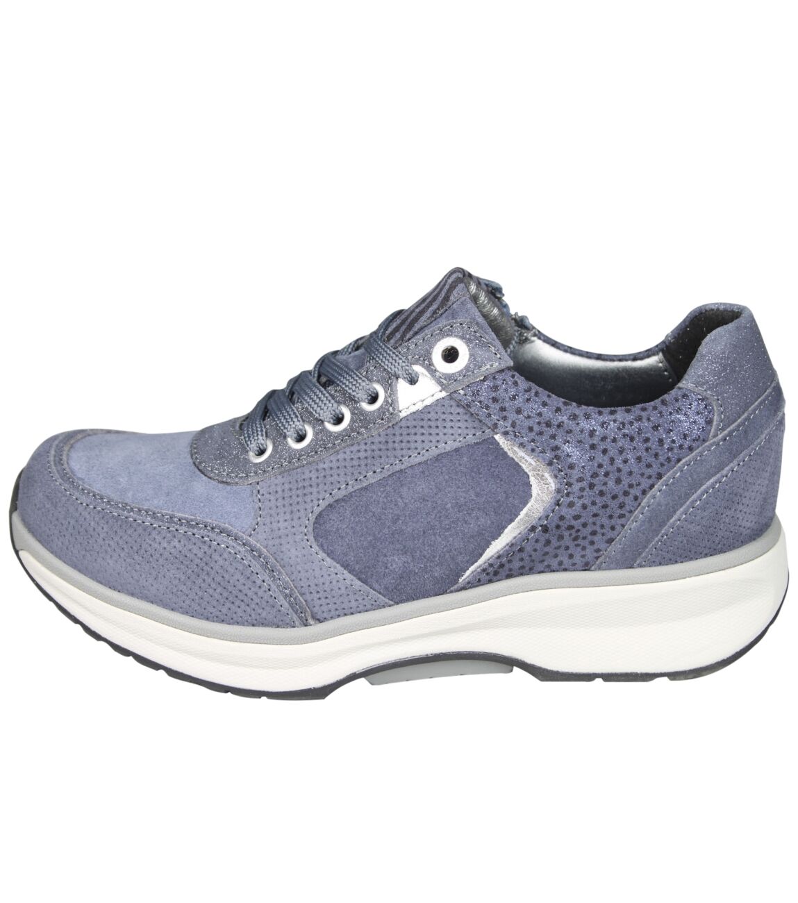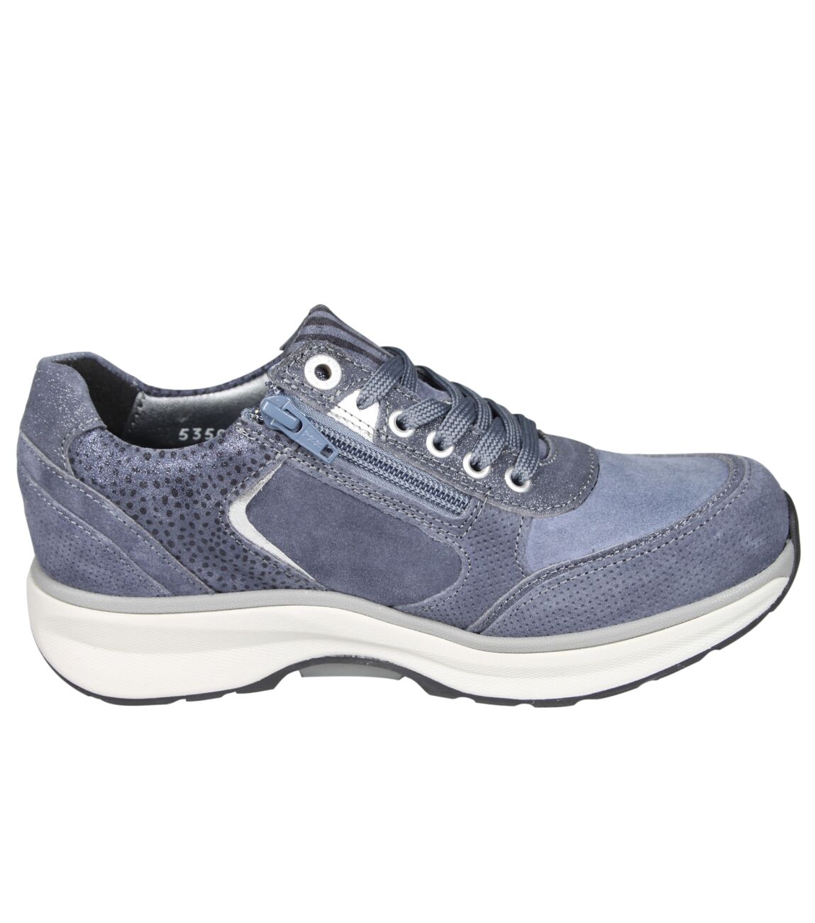 De 30151 Georgia sneaker van Xsensible Stretchwalker 1.1 in wijdte Gx in 2.259 denim fantasy is gemaakt van stretch suede/metallic en geschikt voor gemiddelde/bredere voeten.