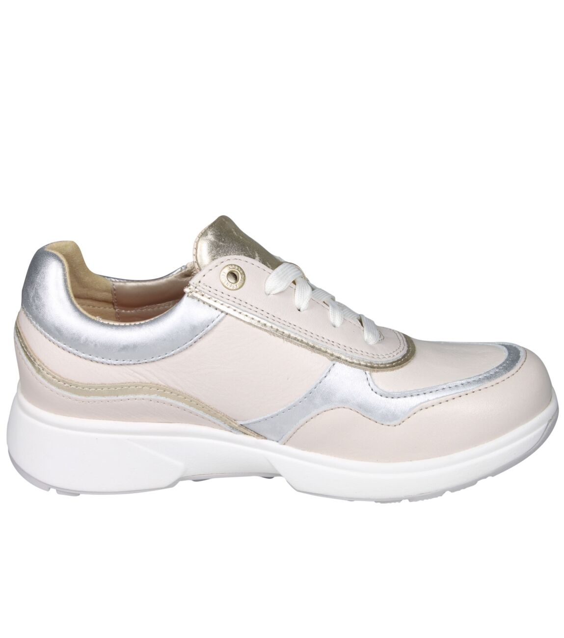 De 30204 Lima sneaker van Xsensible Stretchwalker 2.0 in wijdte Hx in 3.119 ivory combi is gemaakt van stretch leer/metallic en geschikt voor bredere voeten.