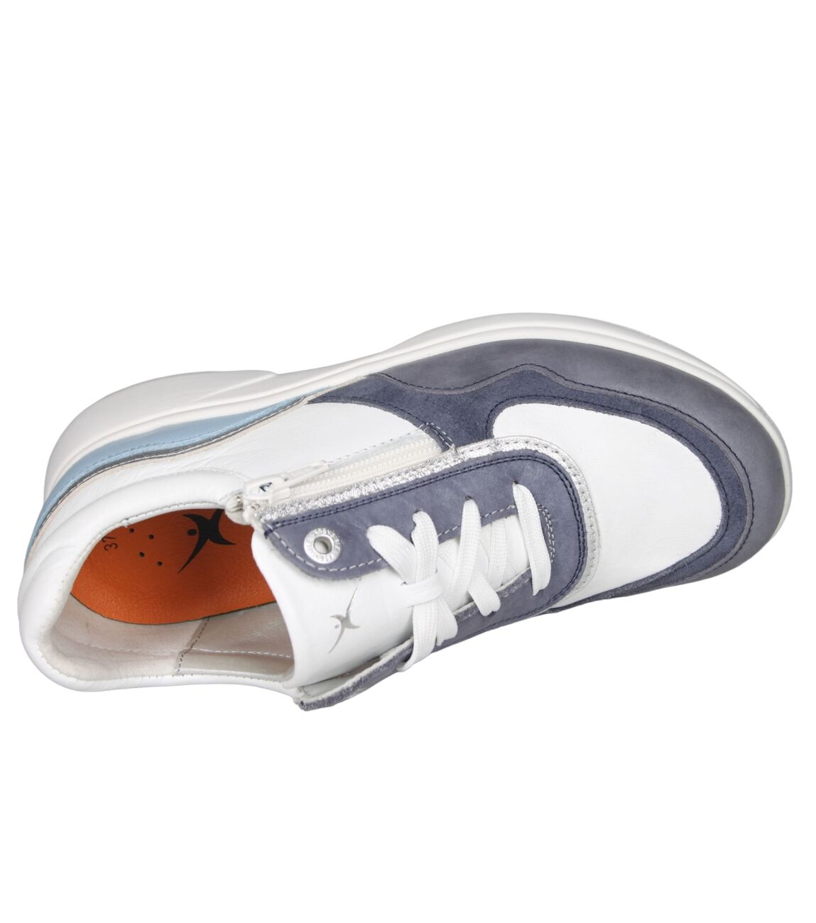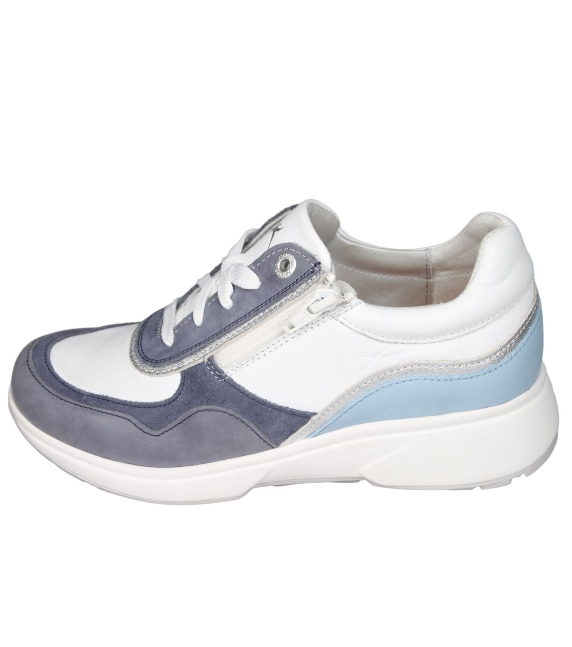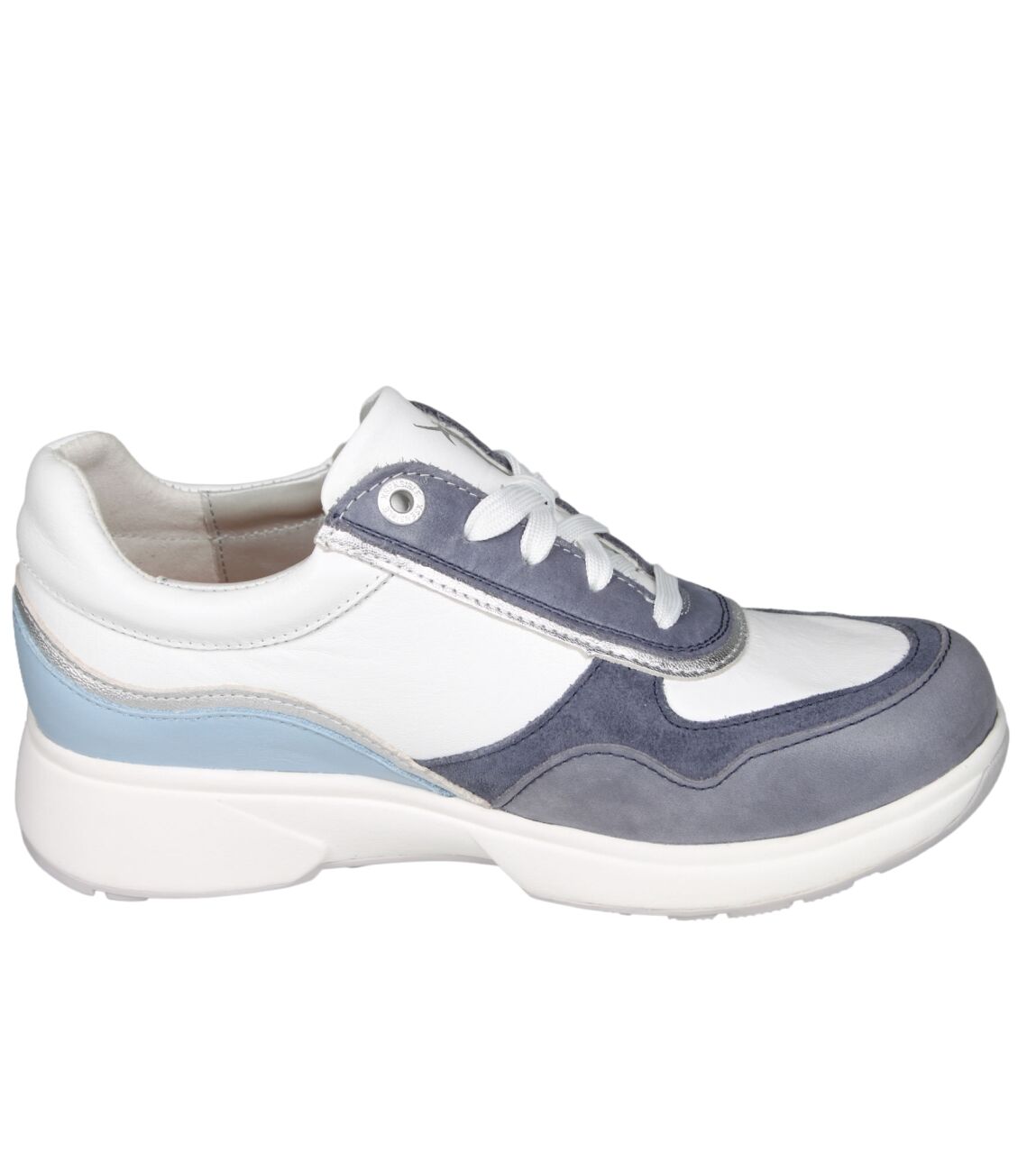 De 30204 Lima sneaker van Xsensible Stretchwalker 2.0 in wijdte Hx in 3.271 denim combi is gemaakt van stretch suede/metallic en geschikt voor bredere voeten.
